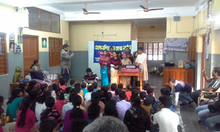 Mr.Jagatbandu and his group from ‘Essential Help Line’, Sodpur visit the children’s home and distribute a few stationary items like notebooks, diaries and pens to the children.