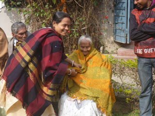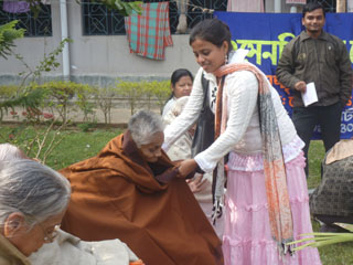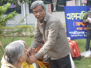 Mr.Jagatbandu and his group from ‘Essential Help Line’, Sodpur visit the Senior Citizen’s home and distribute shawls to the senior citizens.