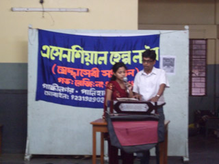 Mr.Jagatbandu and his team from the organisation ‘Essential Help Line’,Sodpur visited and distributed notebooks, pens, pencils and sweets to the children on 23 January 2014.
